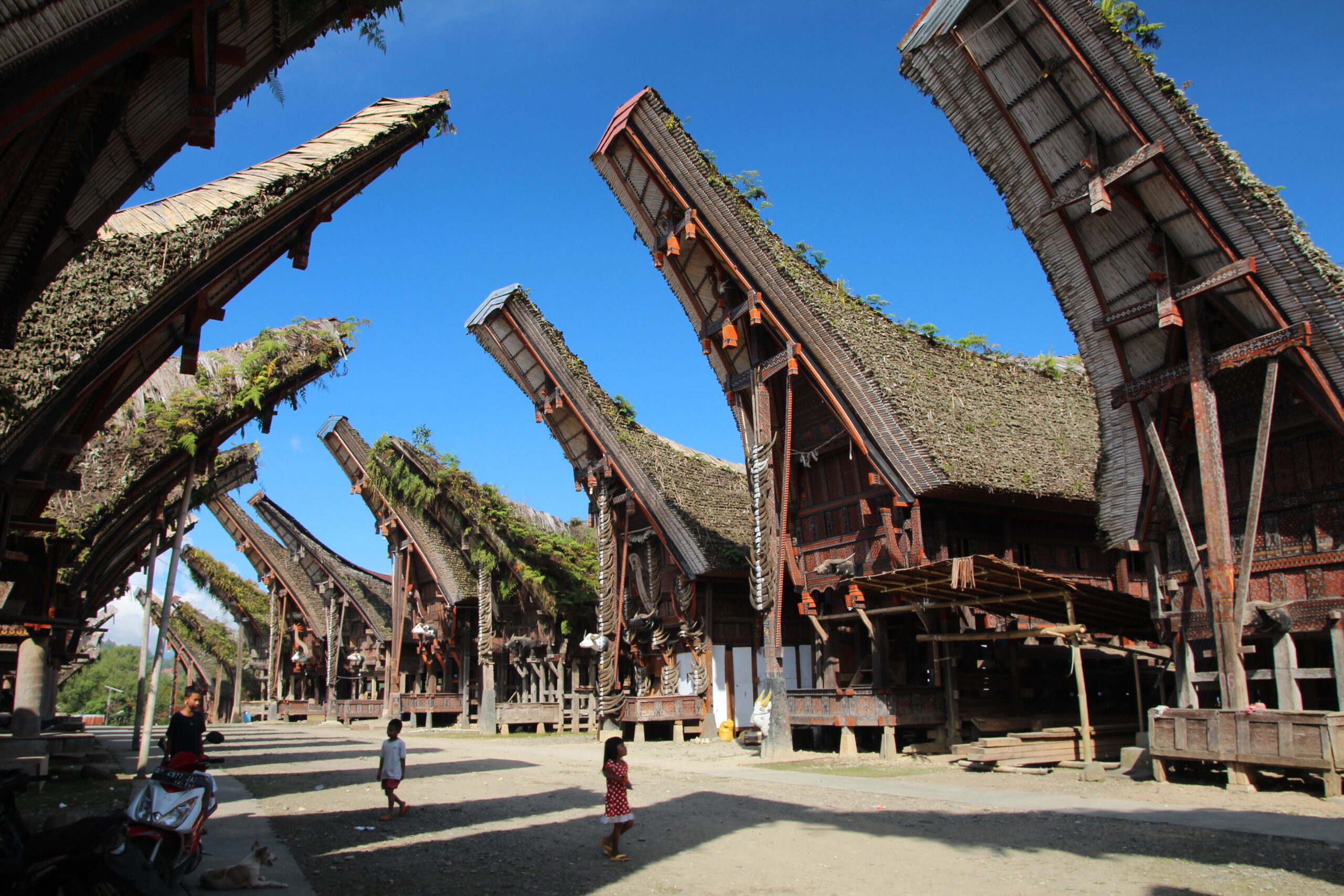 Hagyományos "Tongkonan" házak Palawa faluban, Tana Toraja, Sulawesi